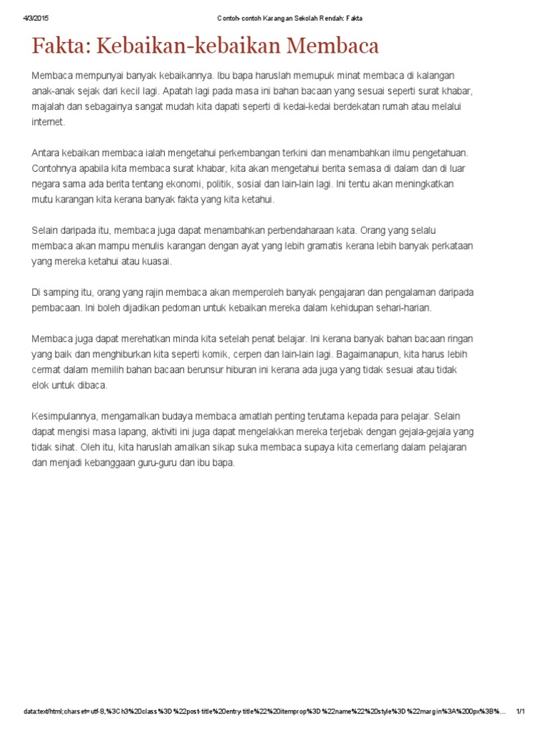 Contoh Contoh Karangan Sekolah Rendah Fakta Kebaikan Membaca Pdf