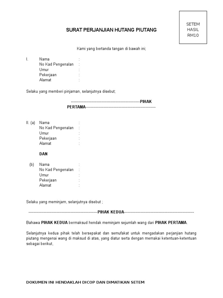Surat Perjanjian Hutang Piutang Pdf